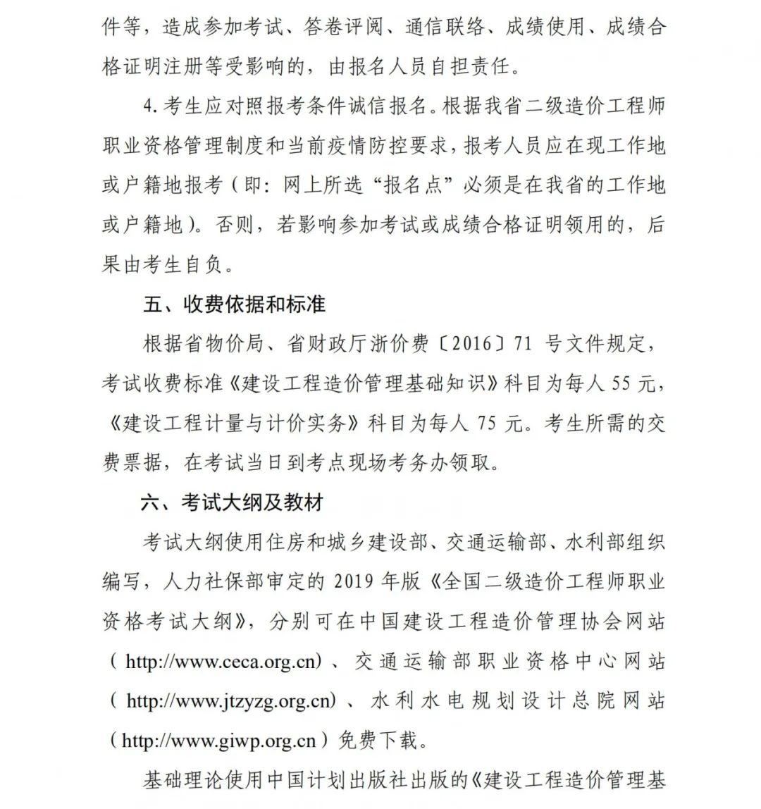 关于做好浙江省2020年度二级造价工程师职业资格考试考务工作的通知